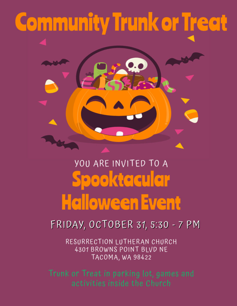 October 31, 5:30 – 7 pm – Trunk or treat event